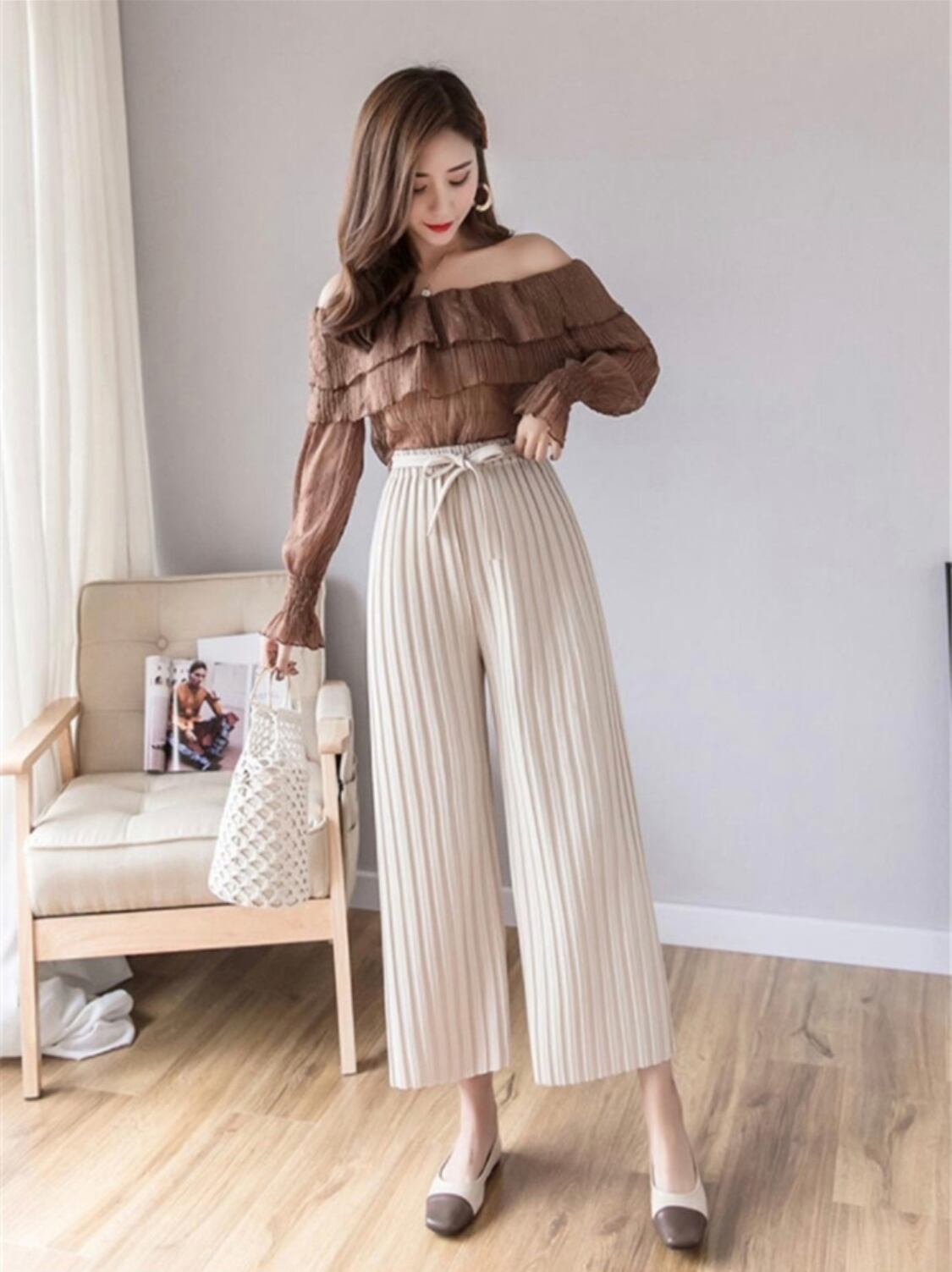 プリーツワイドパンツ
