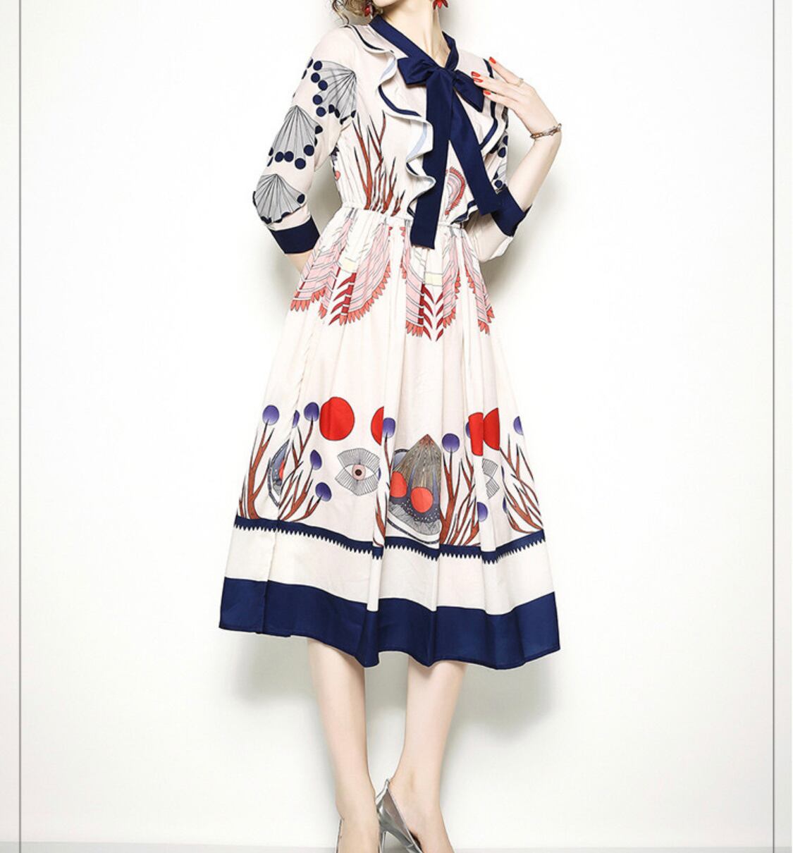 【XL】バスト約96cm 肩幅約39cm 袖丈約48cm スカート丈約123cm ウエスト約72-92cm